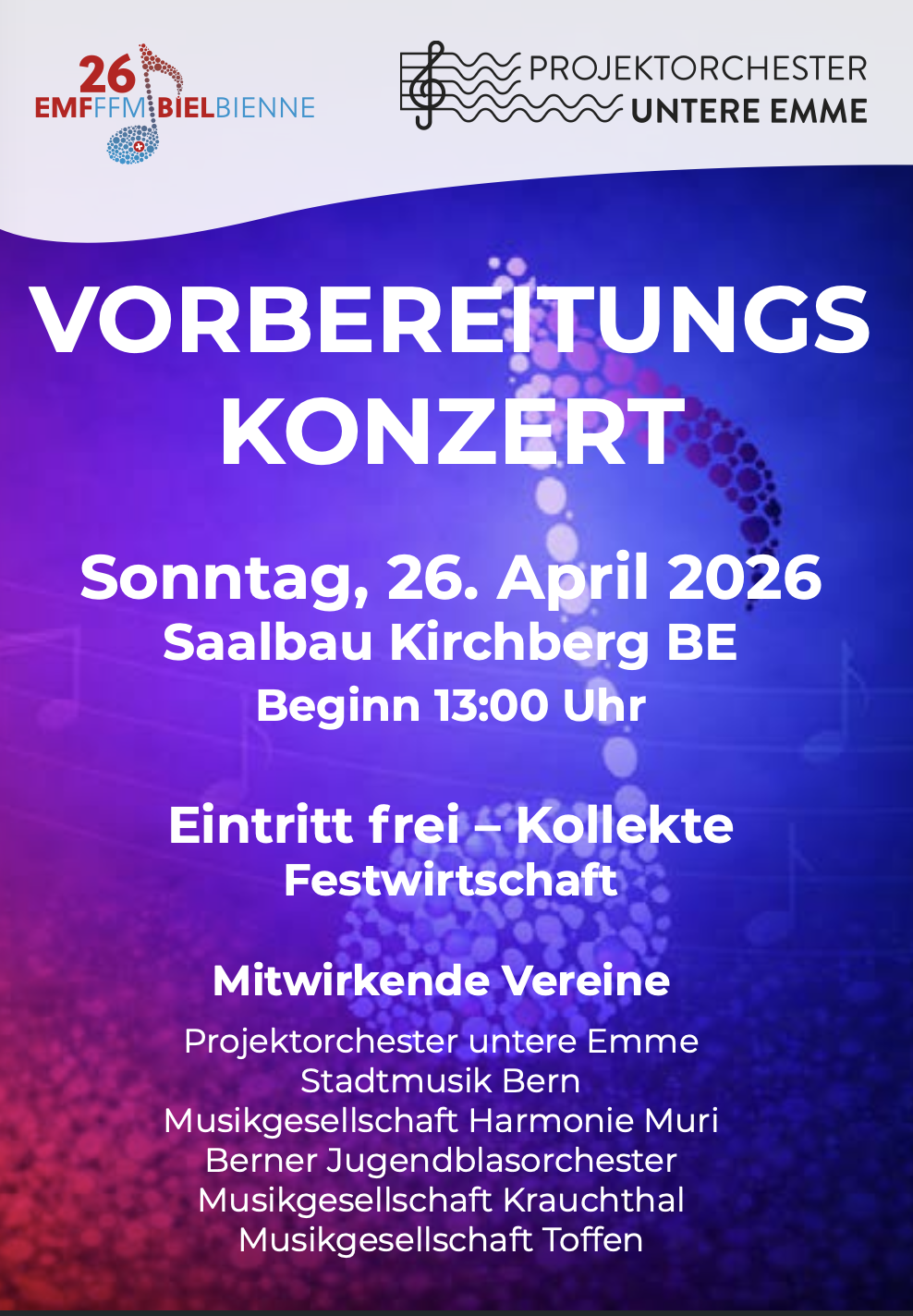Sonntag, 26. April 2026, Vorbereitungskonzert in Kirchberg BE
